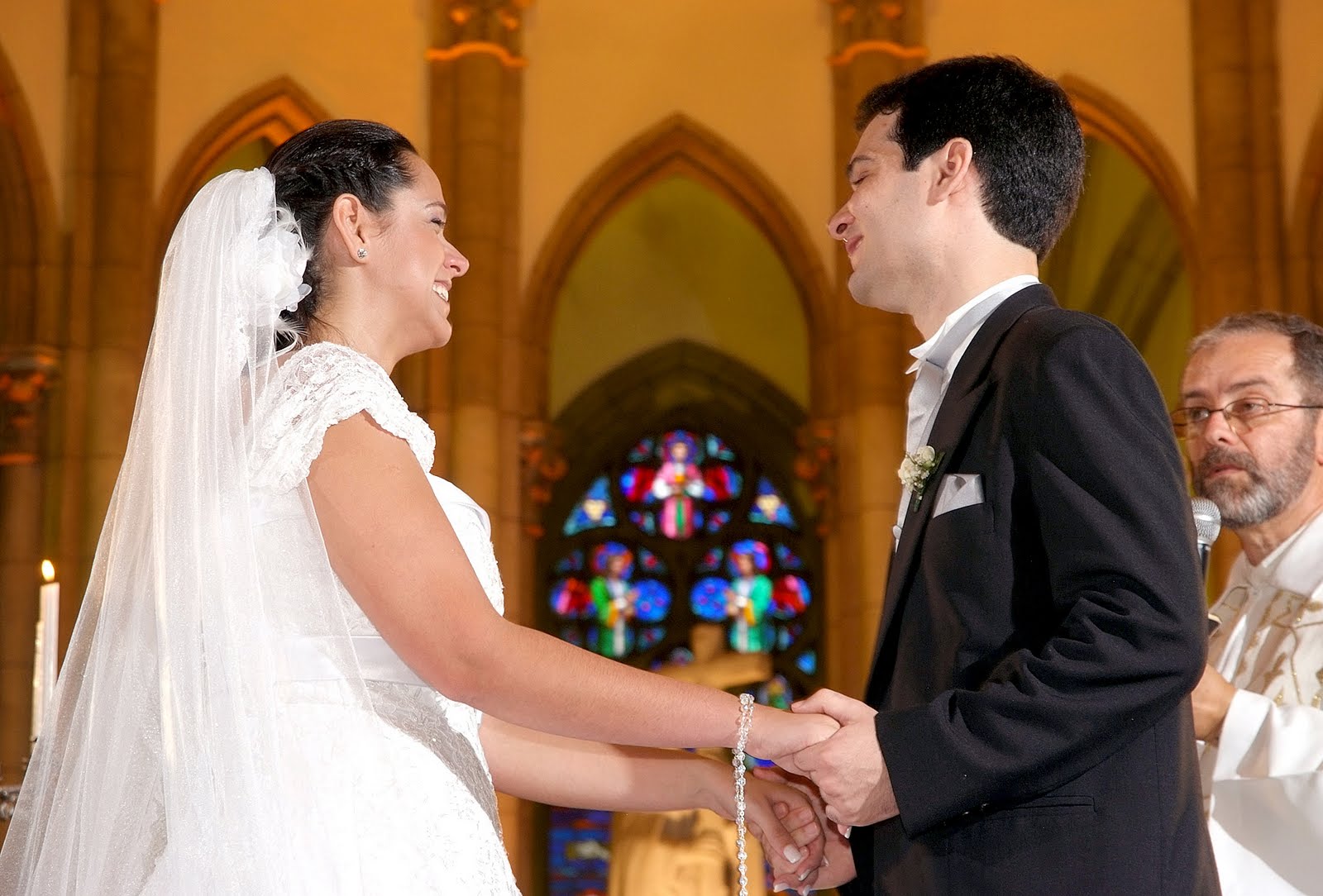 No início, tinha certeza absoluta de que queria a igreja amarela e a festa, vermelha. Daí, lembrei que minha festa de formatura já tinha sido vermelha, então descartei essa cor. Pensei em tons de roxo e lilás, mas também acabei descartando essas cores, porque de tanto ver essas cores em revistas, comecei a achar essas cores meio mortas (não sei como, nem porquê, mas passei a odiar essas cores para flores até hoje, sei lá). Depois cismei com o laranja, até que vi uma decoração linda em rosa pink e laranja, com iluminação decorativa âmbar, que me apaixonei perdidamente.